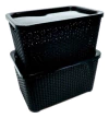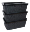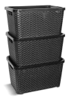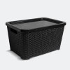 Cesto Plastico Ratan Med. Bajo Con Tapa X3 Colombraro Color Negro