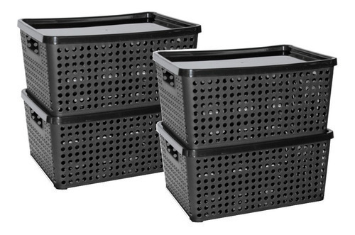 Set x 4 Cesto Organizador Plastico Orbital Mediano Con Tapa Colombraro