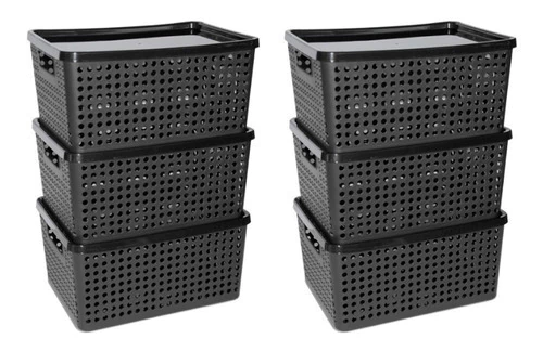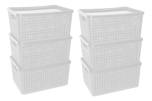 Set x 6 Cesto Organizador Plastico Orbital Mediano Con Tapa Colombraro