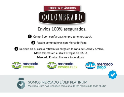 MERCADO ENVÍOS: Realizamos envíos a todo el país. Podés ver plazos de entrega y costos con el código postal donde queres recibir el producto desde el calculador de envíos. Si el producto tengo envio gratis por Mercado Envios, te enviaremos la compra a tu domicilio, y no tendrás costo de envío. El precio total de la compra será el precio publicado del producto.